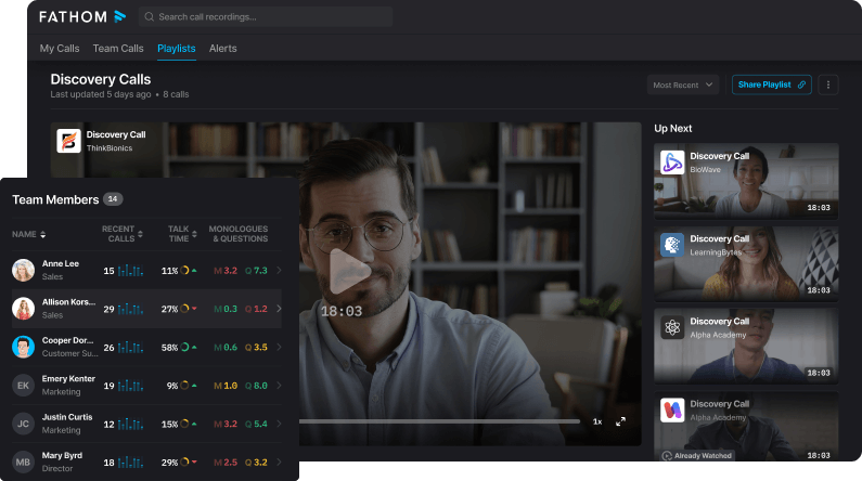 If you’re looking to try out a meeting bot on a budget, then Fathom might be the right choice for you. This free AI meeting assistant is compatible with Microsoft Teams, Zoom, and Google Meet, and also integrates with CRMs like Hubspot, Salesforce, and Close. Fathom also has a searchable repository for calls and provides keyword alerts, which can save you valuable post-meeting time.