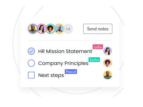 The first step to an efficient and productive meeting is to start with a meeting agenda. Fellow makes it easy to create an agenda using templates which build consistency. From there, Fellow prompts meeting attendees to prepare for the upcoming meeting and collaborate on what to talk about. During the meeting, check off points as they get discussed, add notes to have a central source of truth, and document action items and next steps. This way, everyone leaves the meeting on the same page.