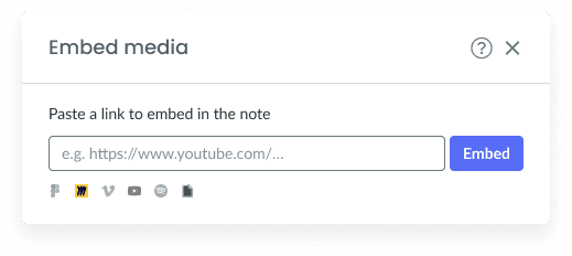 1. Click on Embed Media by opening the slash (/) menu or by clicking on the plus button (+) in the bottom tool bar