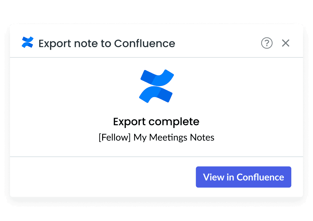 If you’re using Confluence as an internal database, export your Fellow notes to a new or existing page in Confluence to keep all your information in one place.